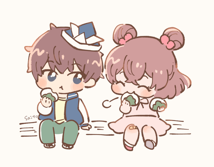 菱川さんと油布さんがブラプレカラーのメレンゲクッキーを購入していたのに衝撃を受けて描いた絵。